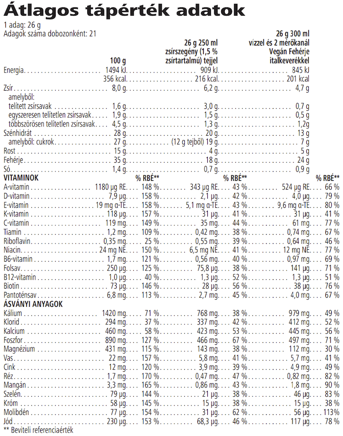 **A tápértékek csak akkor érvényesek, ha a címkén szereplő utasításoknak megfelelően készítik el a terméket.